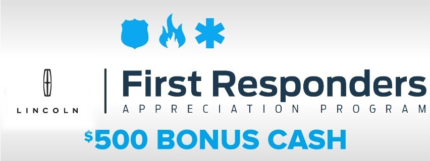 Lincoln Motor Company is grateful to you for your honorable service to our country and would like to salute those who serve. That's why we're proud to offer you and your families a First Responder Bonus Cash Offer.